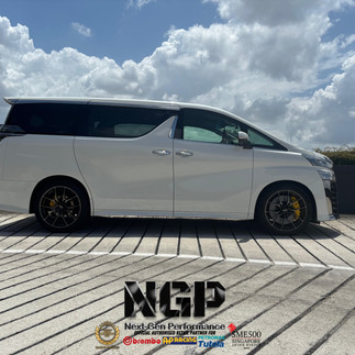 Stronger stopping power with improved heat control and pedal feel, finished with a bold yellow caliper setup that stands out cleanly behind the wheels. Performance and aesthetics combined for the Alphard platform.